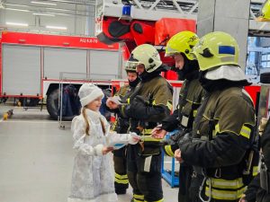 Юные участники в костюмах главных символов праздника – Деда Мороза и Снегурочки, поздравили сотрудников экстренных служб, вручив им открытки с добрыми пожеланиями, которые сами нарисовали, проинформировали на официальной странице школы №2073 в социальных сетях.